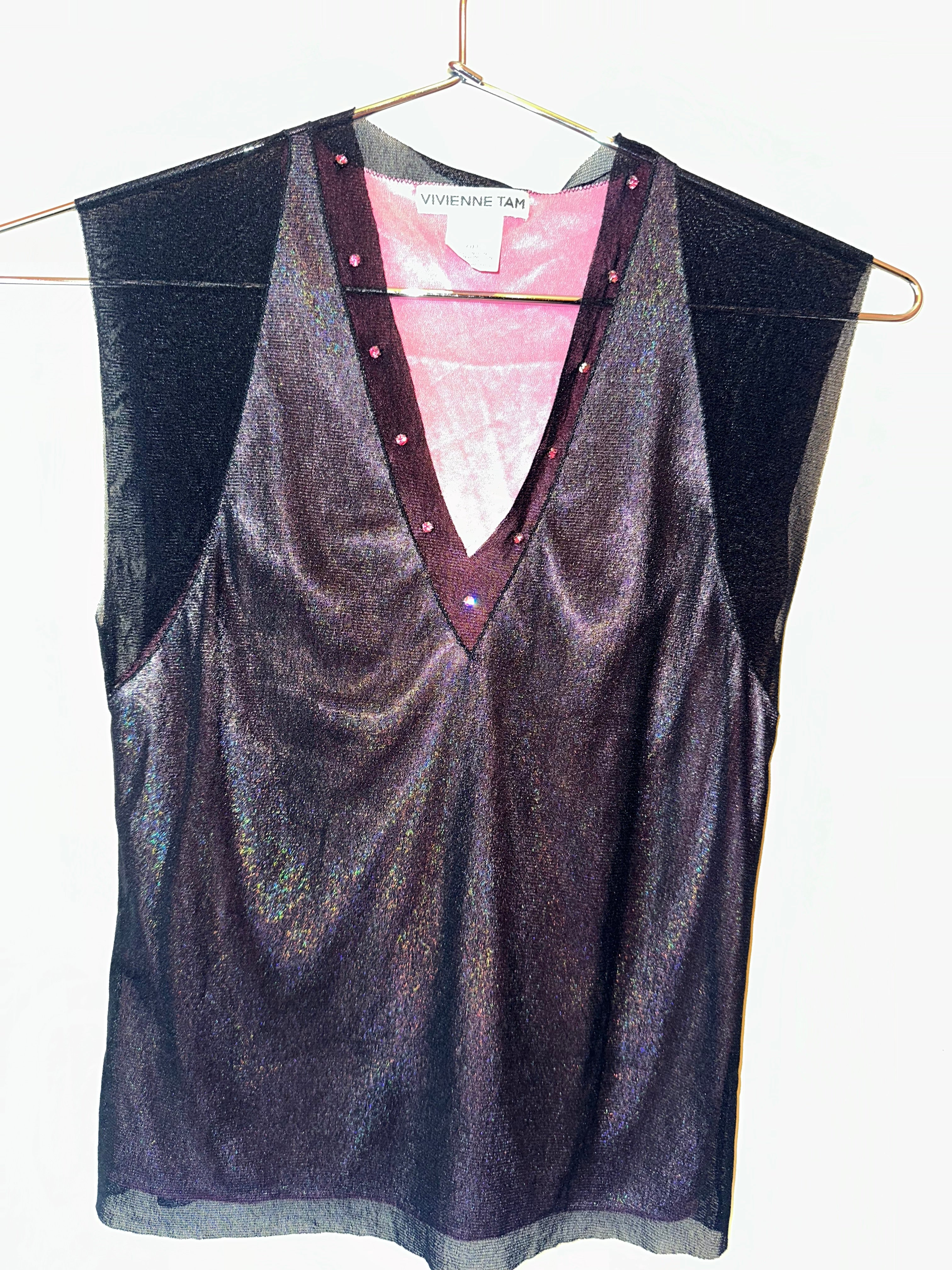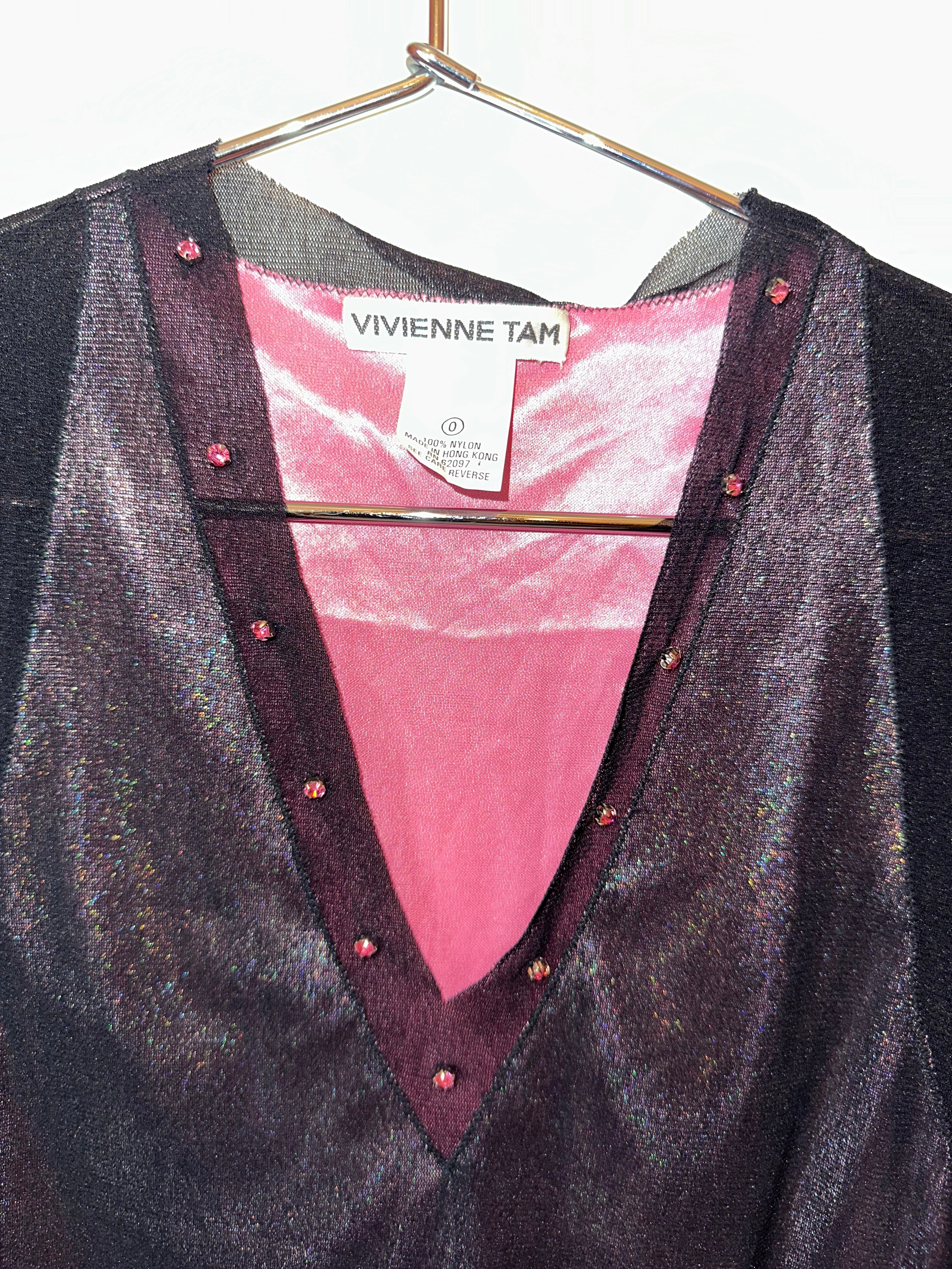 Vivienne Tam Rhinestone Studded Pink Satin Inside