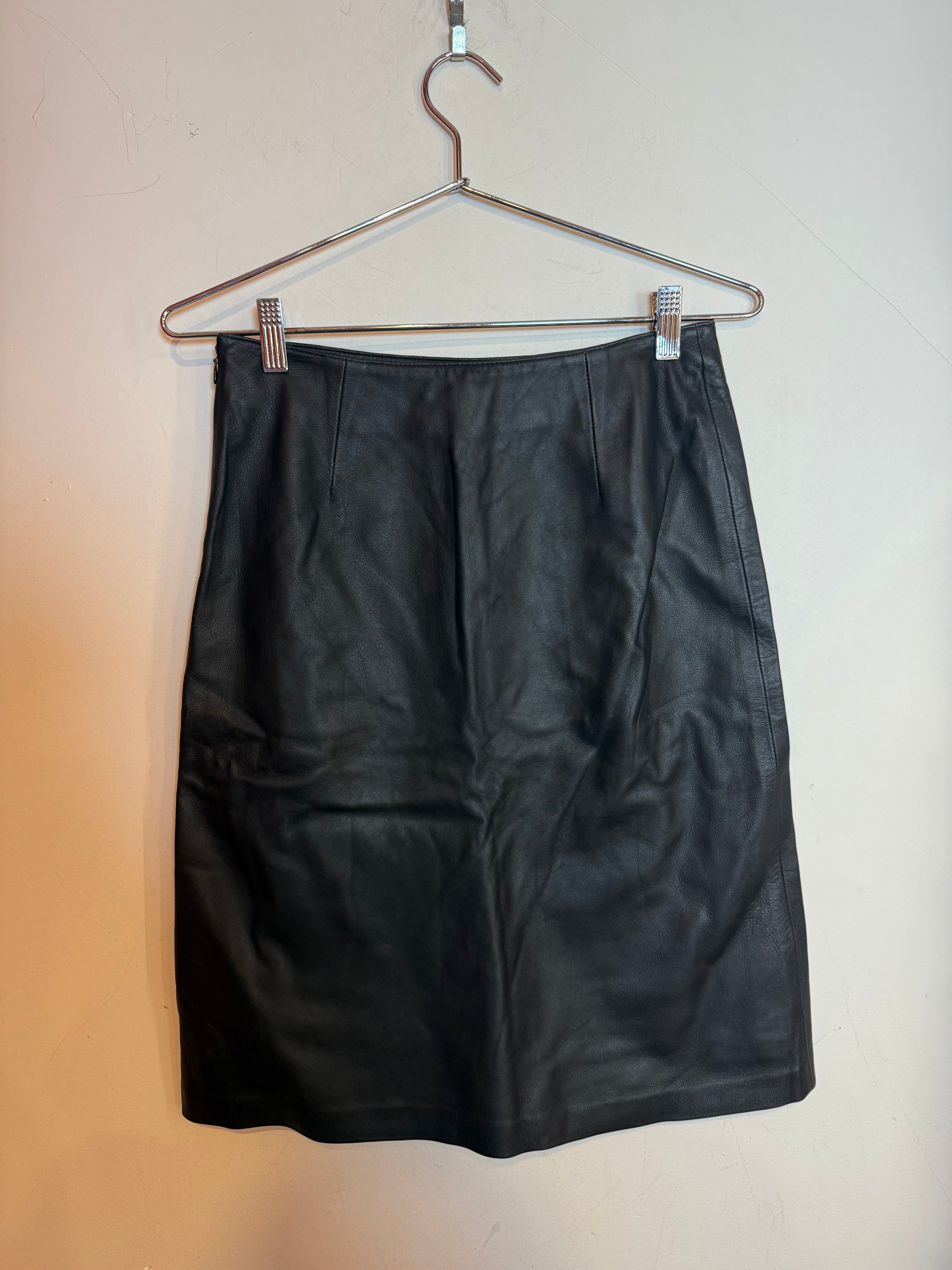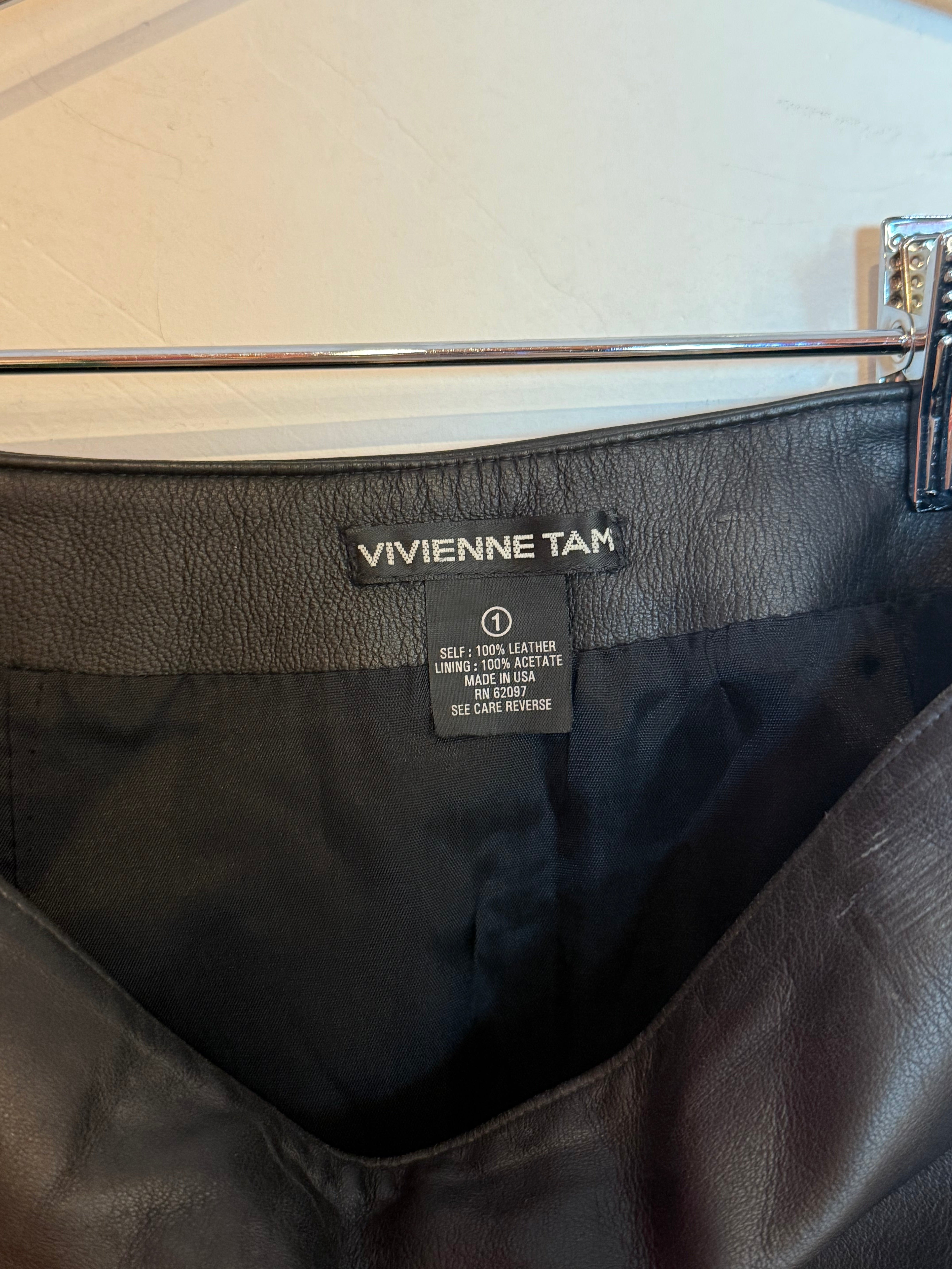 Vivienne Tam Black Leather A Line Mini Skirt Size 1