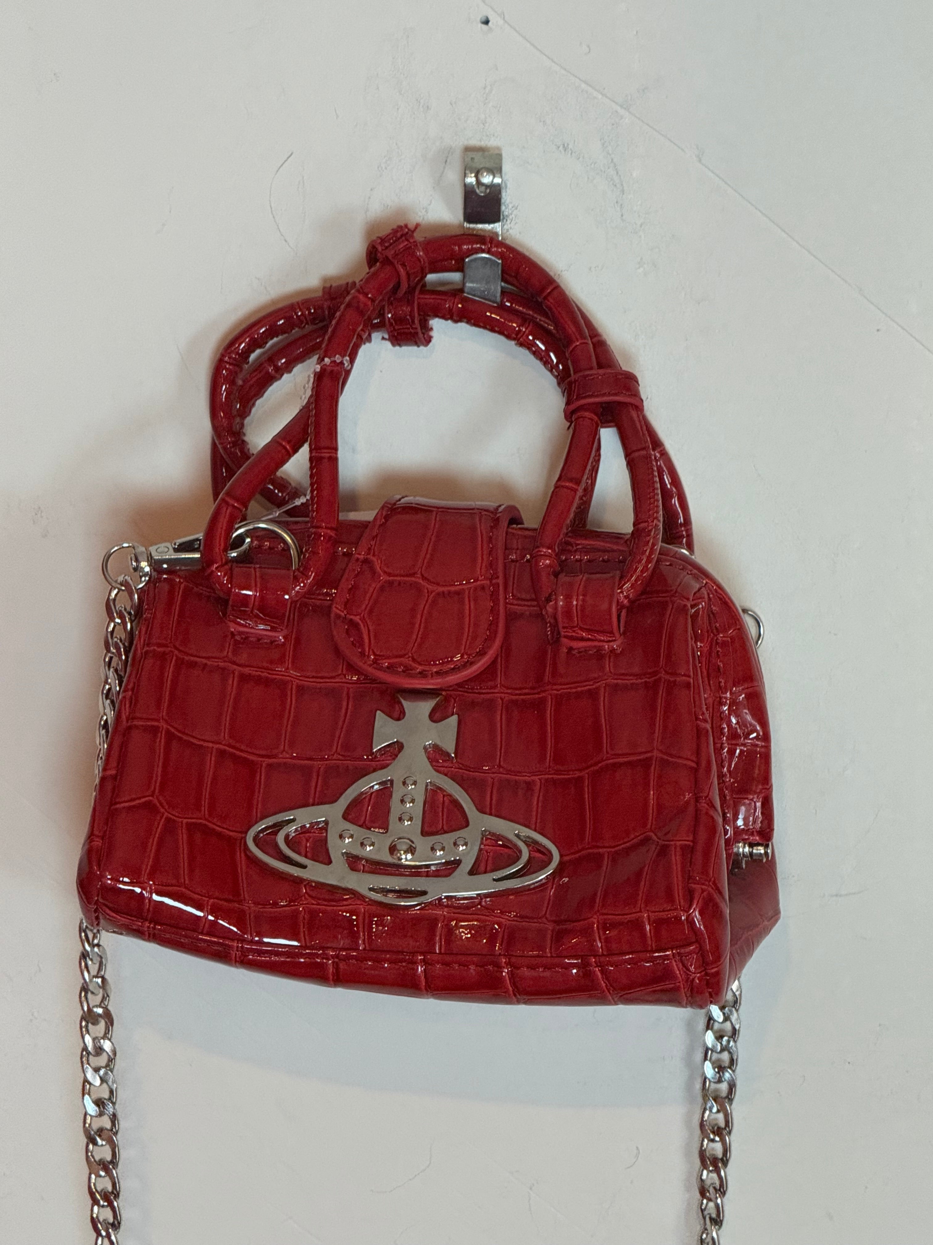 Vivienne Westwood Croc-effect Patent Leather 2-Way Shoulder Bag HandBag Red