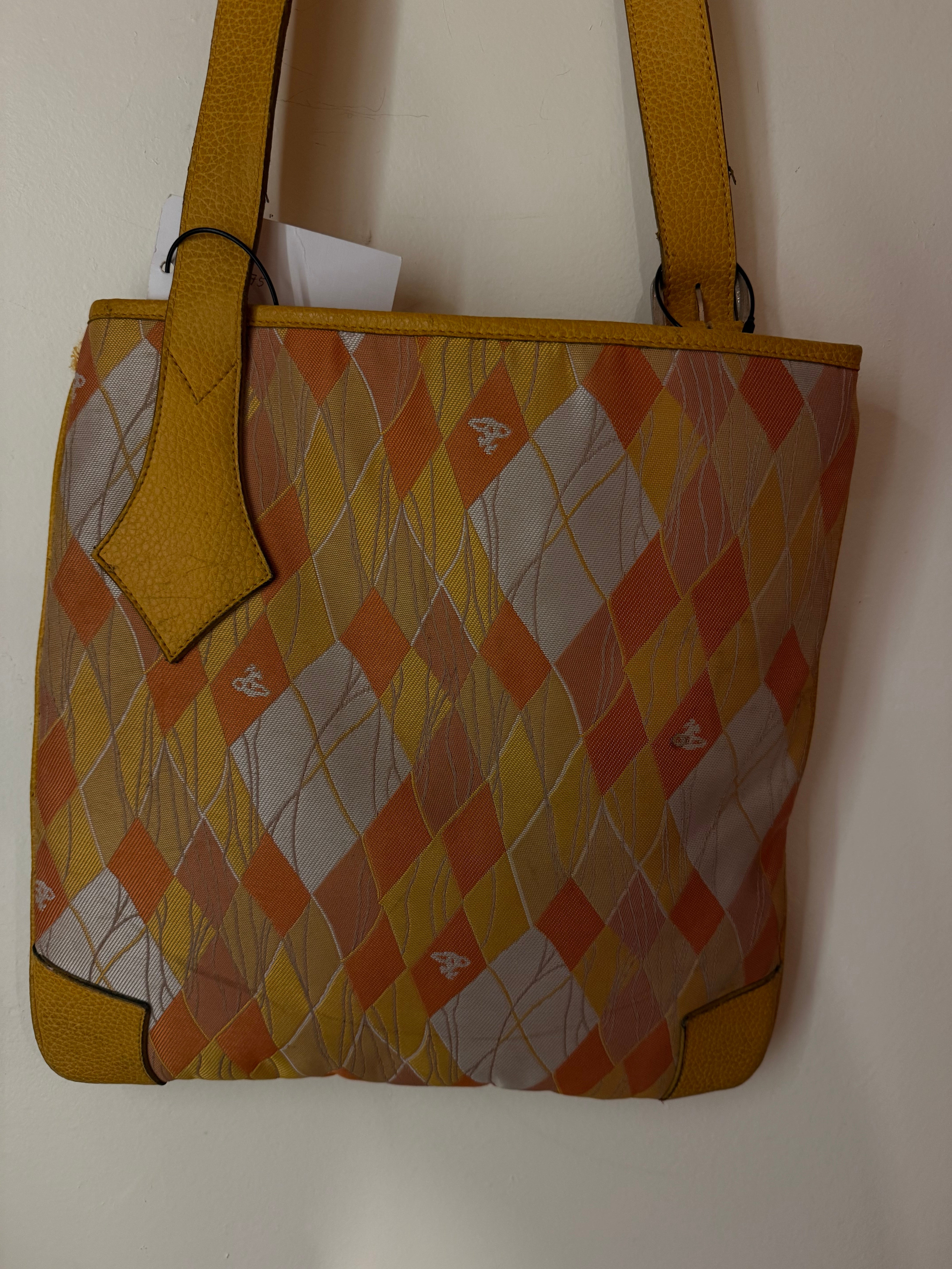 Vivienne Westwood Orange/Yellow Argyle Print Tote